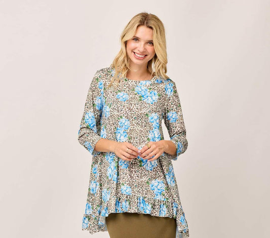 Blue/Brown Roses Top! Small Final Sale! Cannot be Returned!