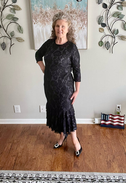 BLACK LACE MIDI DRESS WITH LINING Small only. FINAL SALE! Cannot Be Returned!