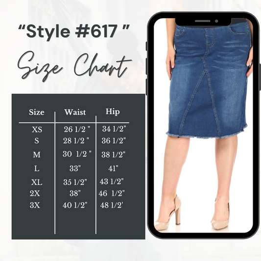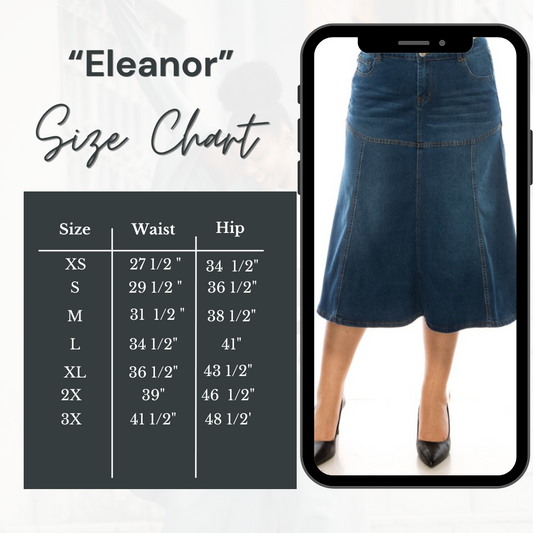 The "Eleanor" Jean Skirt XS & 3X. Final Sale! Cannot be Returned!