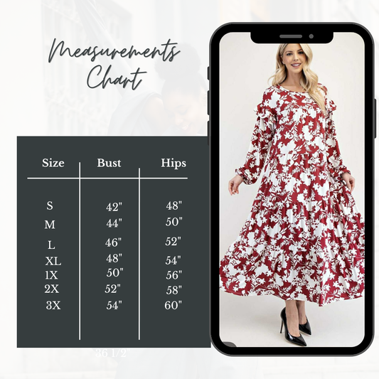 "Serena" Burgundy Floral Dress: M-2X-FINAL SALE! Cannot Be Returned!