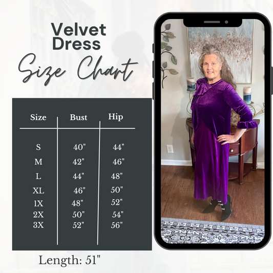 Purple/Plum Velvet Dress: S-3X. Can Be Returned For Exchange Only!