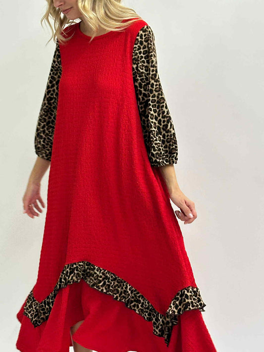 Red Leopard Dress- M-3X. Final Sale- Cannot be Returned!