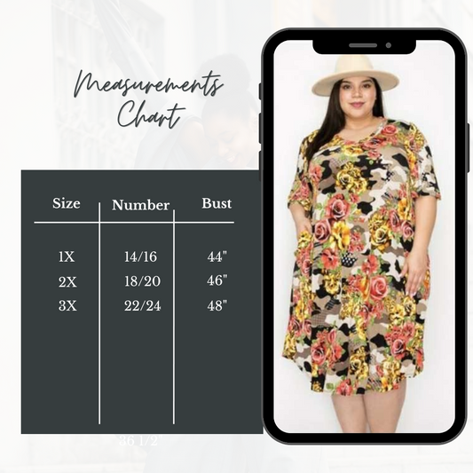 "Nellie" Floral Print Dress: L-1X (FINAL SALE! Cannot Be Returned!)