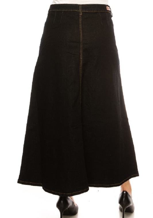 Style: #812 BLACK MAXI Jean Skirt: XS,S & L FINAL SALE! Cannot Be Returned!