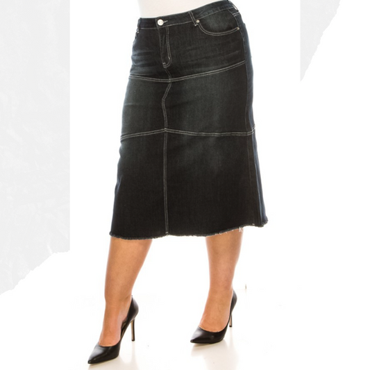 The "Ebony" Black Wash Jean Skirt: S-3X-FINAL SALE! Cannot Be Returned!
