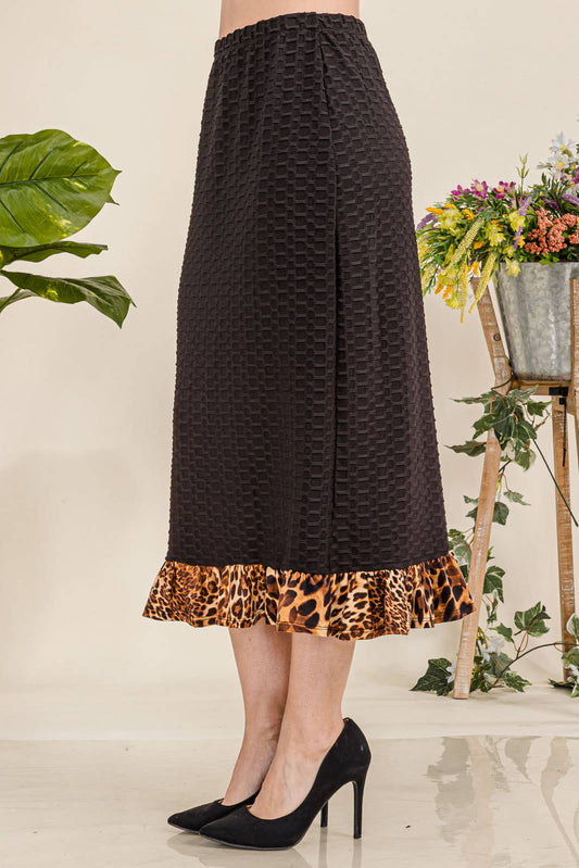 BLACK HONEYCOMB SKIRT WITH ANIMAL PRINT RUFFLE: Small Final SALE! Cannot Be Returned!