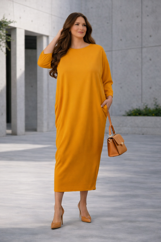 Mustard Dolman Sleeve Dress: Large , FINAL SALE! Cannot Be Returned!