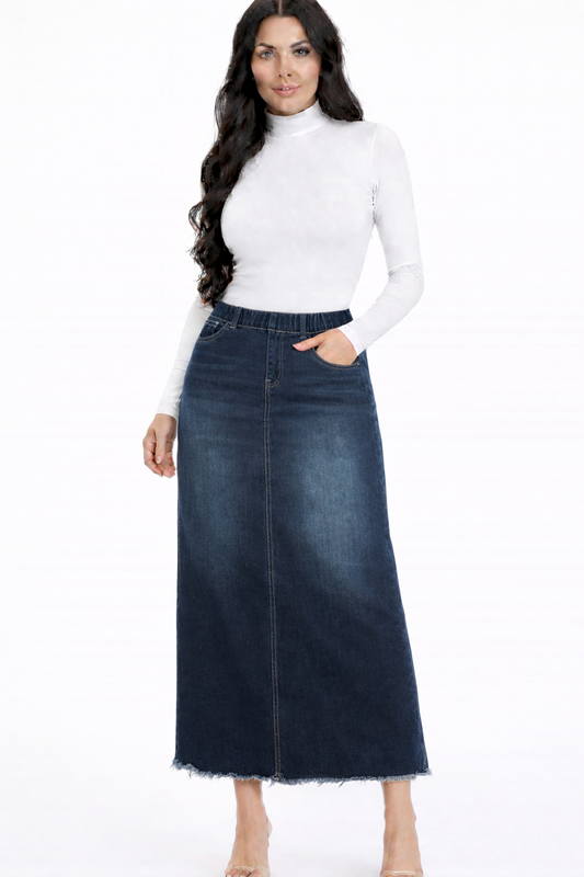 “Lacey” (Elastic Waist) Maxi Denim Skirt: S-M, XL & 3X Best Selling! ( Can Be Returned For Size Exchange Only!)