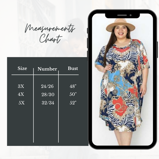 Navy Multi Print Ex-Plus Dress: 3X FINAL SALE! Cannot Be Returned!