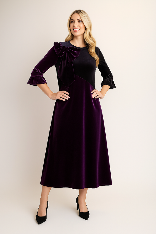 Purple/Plum Velvet Dress: S-3X. FINAL SALE! Cannot Be Returned!