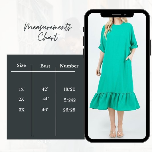 NEW! "Emerald" Green Plus Dress: 1X-3X Arriving in Stock: 1/1