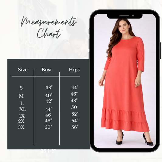 "Pre-Order"-New! "Collette" Coral Dress: S-3X (Arriving In Stock: 2/7-2/15)