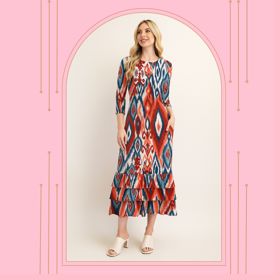 “Ginger" Geometric Print Dress S-M & 2X-3X FINAL SALE! Cannot Be Returned!