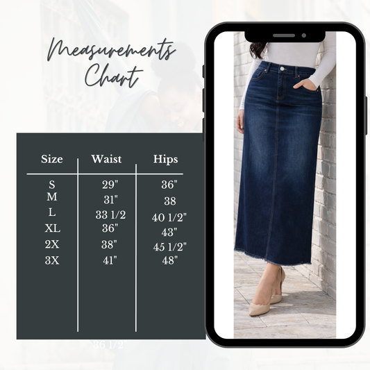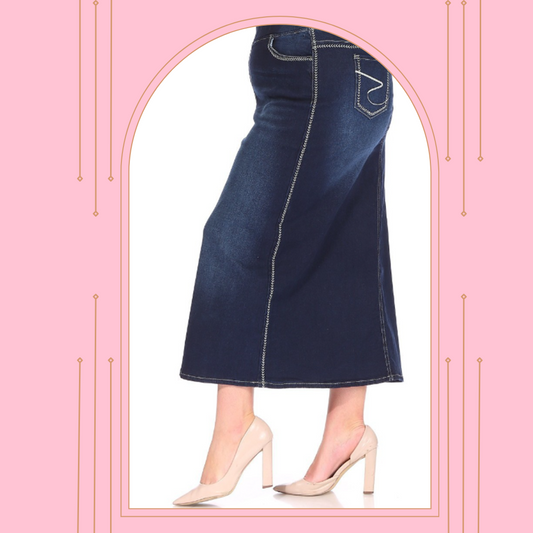 Our Maxi Jean Skirts Are "Ankle" Length and available in several colors: Dark Indigo, Indigo, Vintage & Black.
