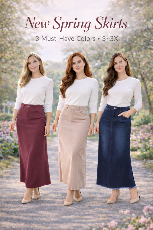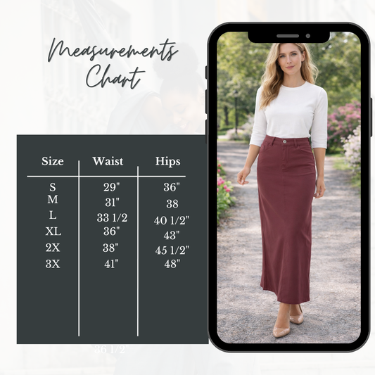 NEW! Cabernet Maxi Jean Skirt: S-3X Arriving in Stock: 4/14