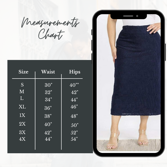 NEW! Navy 35" Textured Skirt: S-4X Arriving in Stock: 9/2