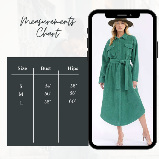 NEW! "Georgia" "OVERSIZED" Green Corduroy Shirt Dress: S-L