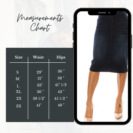 "Lacey Too" Midi Jean Skirt: S-M & XL( Can Be Returned For Size Exchange Only!)