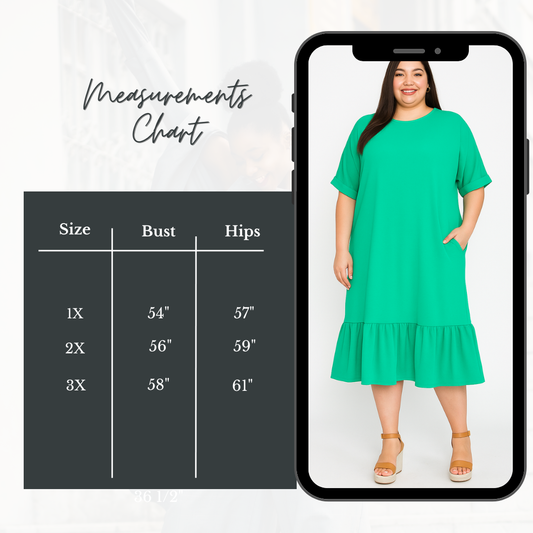 NEW! "Emerald" Green Plus Dress: 1X-3X