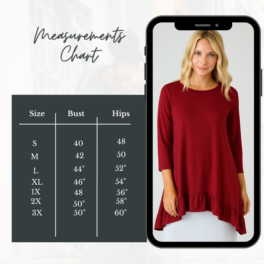NEW! "Red-Berry" Ruffle Top: S-3X