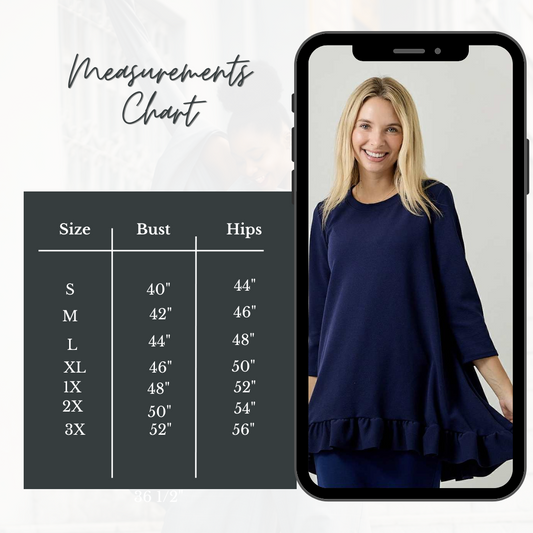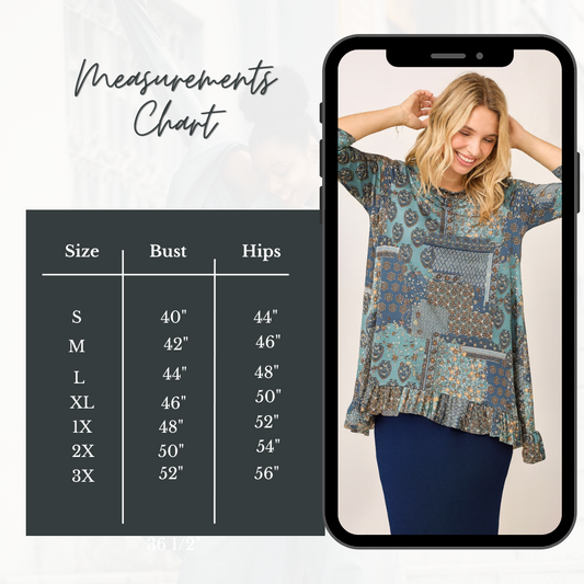 NEW! Blue Print Ruffle Tunic Top: S-3X