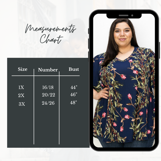 NEW! Navy/Pink Floral "V" Neck Top: 1X-3X