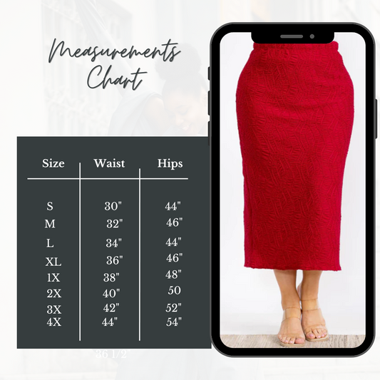 NEW! Cranberry 35" Red "Textured" Skirt : S-4X