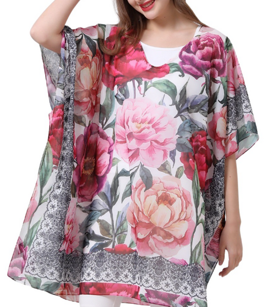 NEW! Pink & Red Peony "Faux" Lace Tunic