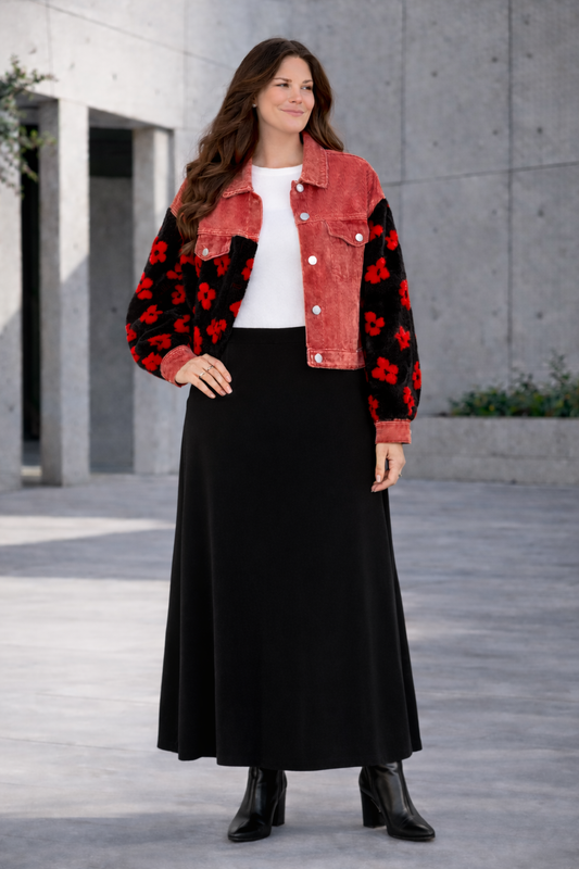 Red Corduroy/Sherpa Jacket: S & L FINAL SALE! Cannot Be Returned!