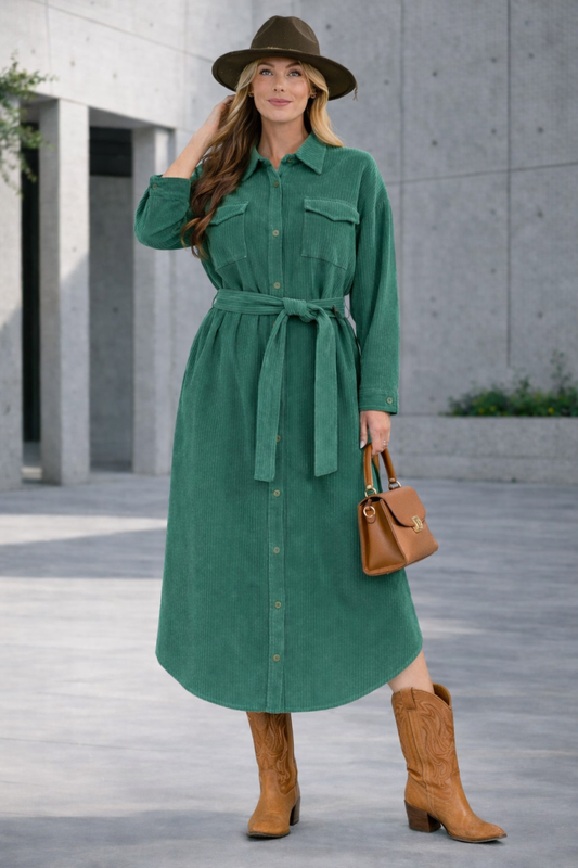 "Georgia" "OVERSIZED" Green Corduroy Shirt Dress/Jacket. Small-fits up to size 18 FINAL SALE! Cannot Be Returned!