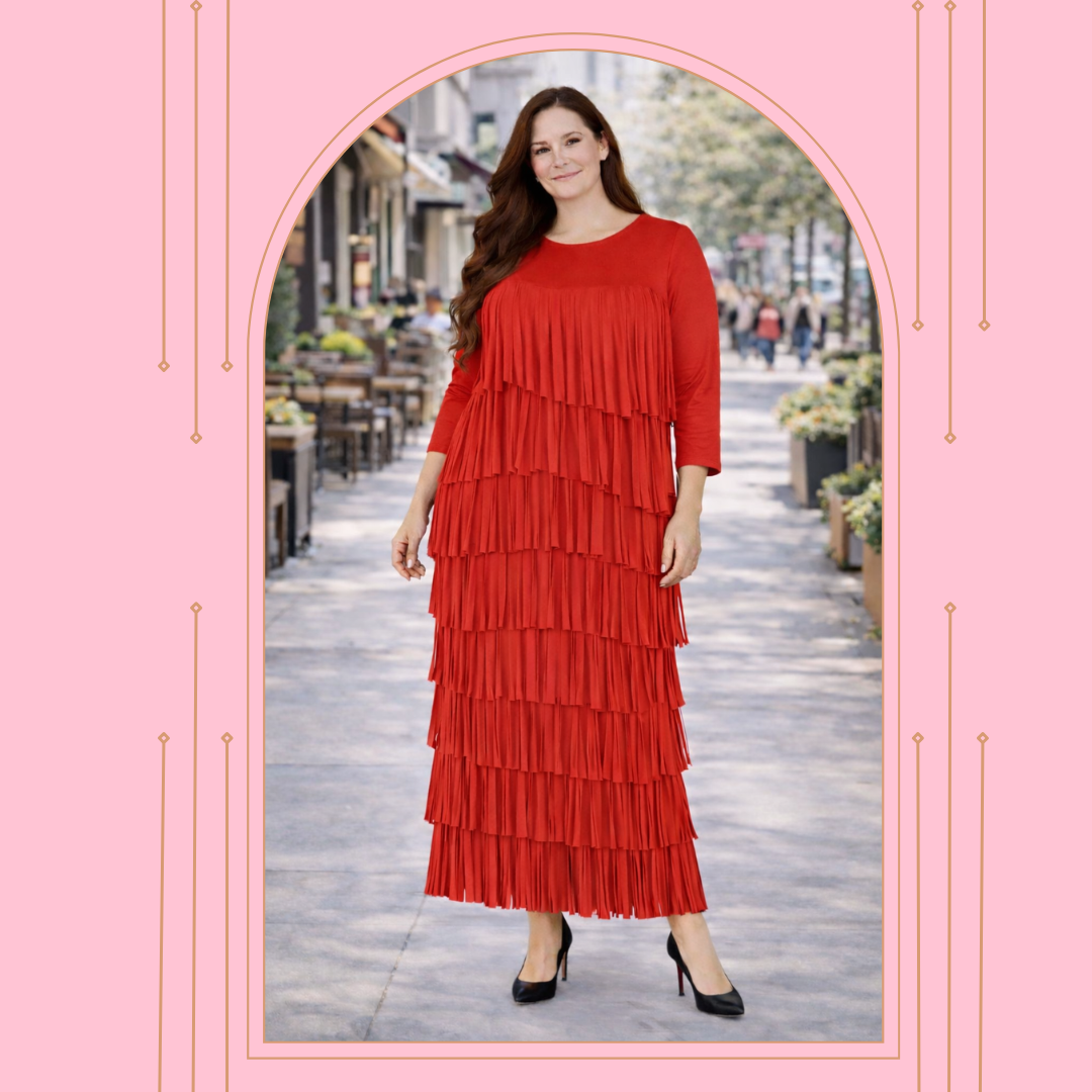 The top features 3/4 sleeves with fun fringe detail, while the maxi skirt offers a comfortable elastic waist with no slits for a modest, worry-free fit. Fringe detail on both pieces adds movement and a flattering flow.