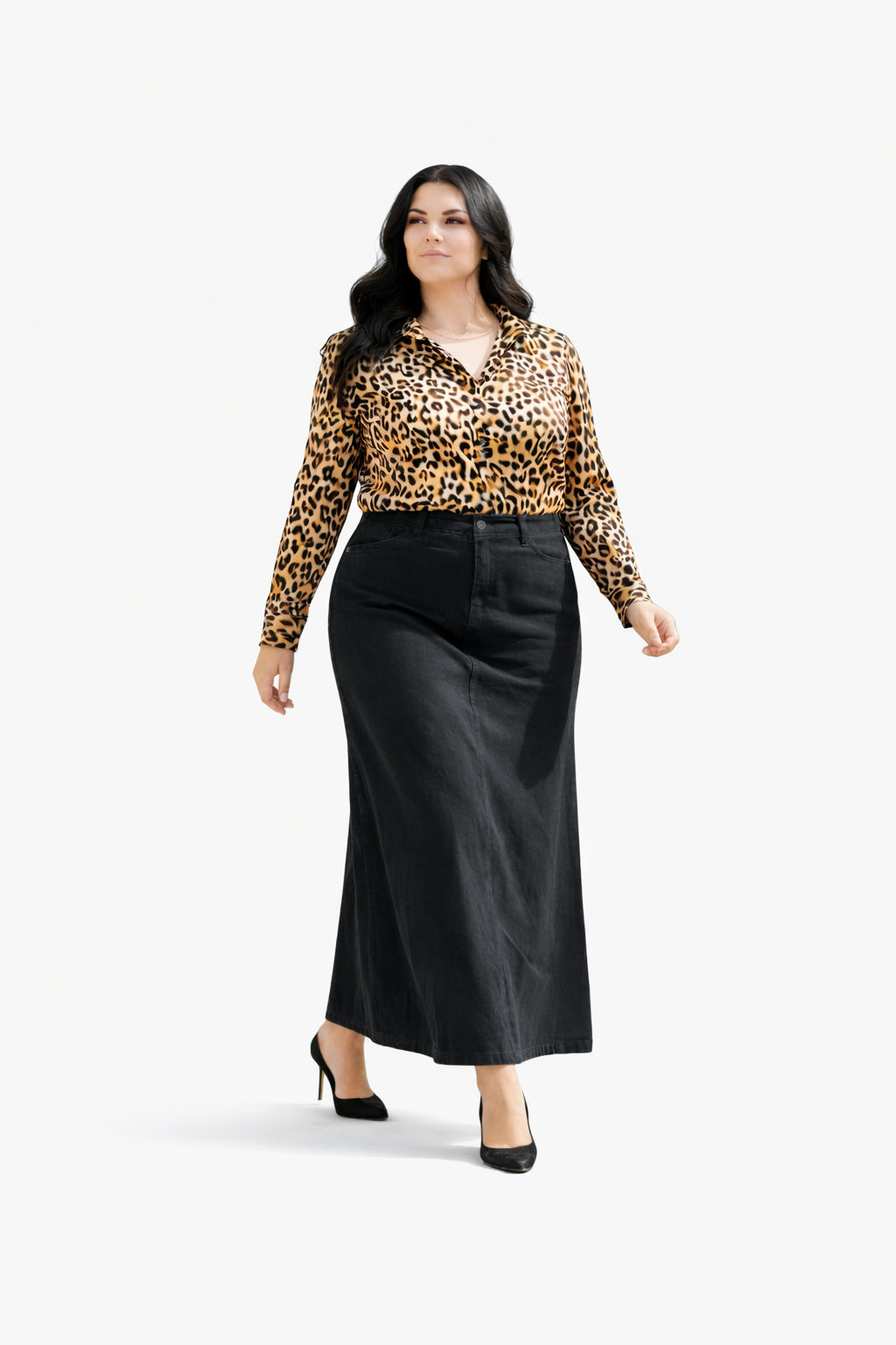 NEW! "Charity" Black Maxi Jean Skirt: S-3X