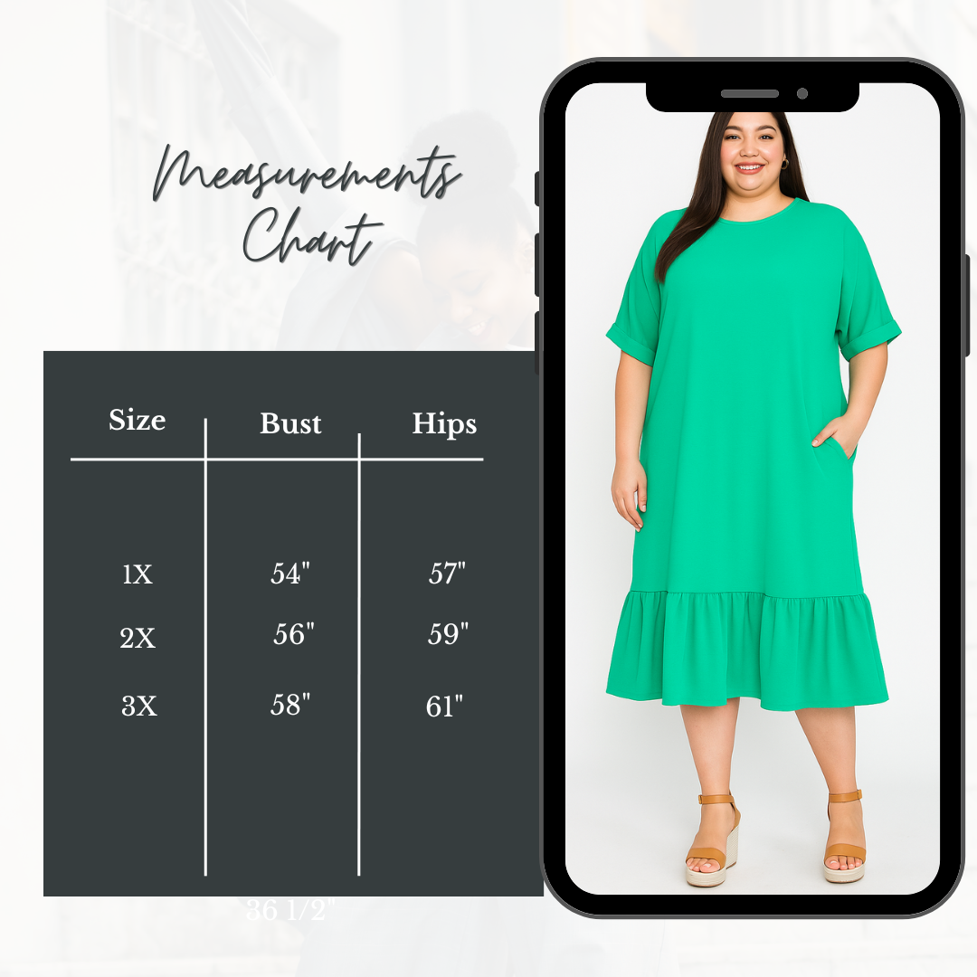 "Emerald" “Oversized “ Green Plus Dress: 1X-3X FINAL SALE! Cannot be Returned!