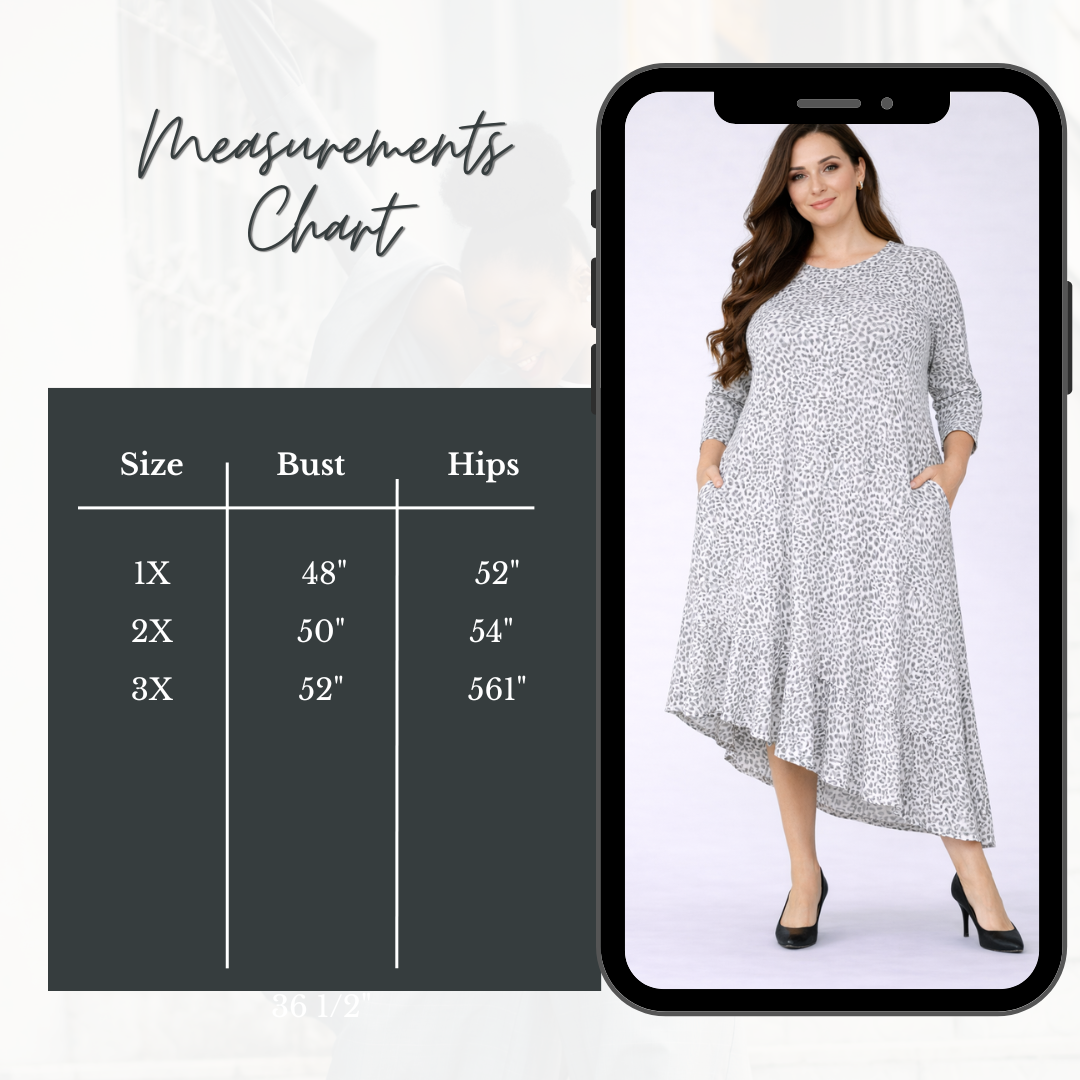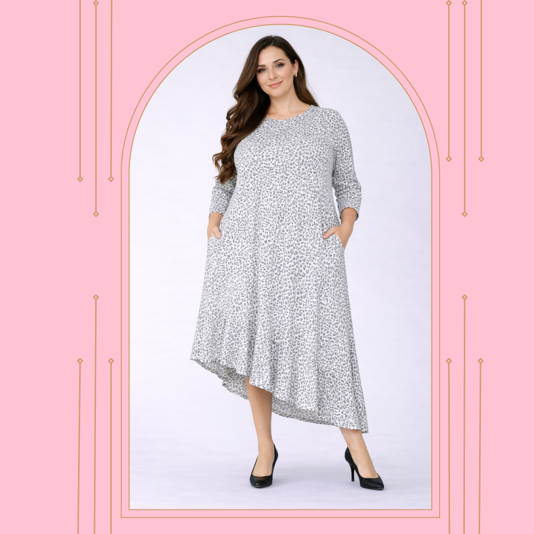 "Gracie" T-Shirt, Gray Leopard Plus "T-shirt) Dress: 1X-3X FINAL SALE! Cannot Be Returned!