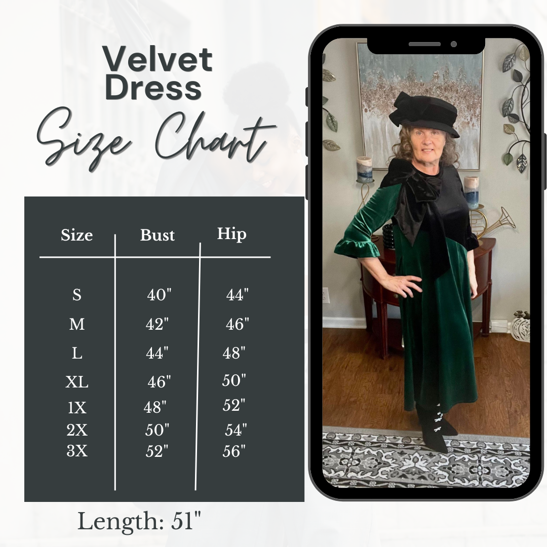Green/Black Velvet Dress! S-3X. Can Be Returned For Exchange Only!