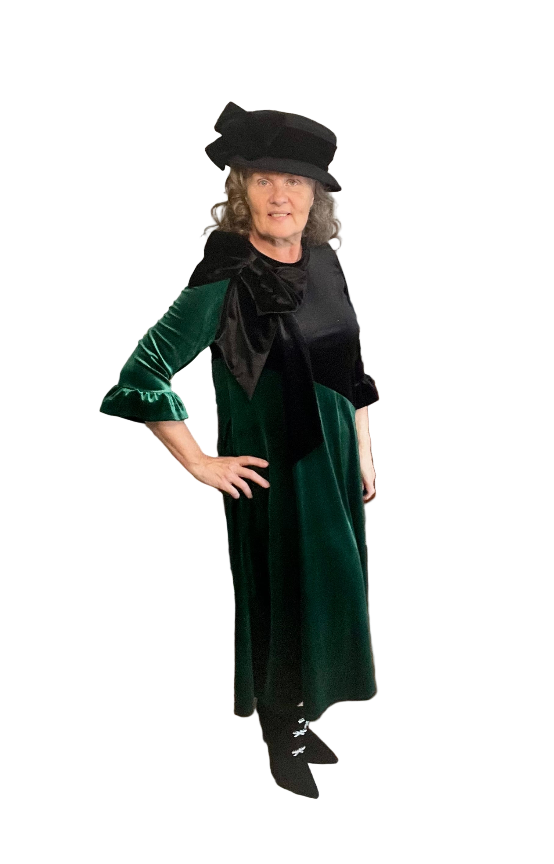 This dress comes in a beautiful soft velvet, a classic round neck, 3/4 sleeves with ruffle and a Neck Bow. It even has pockets!