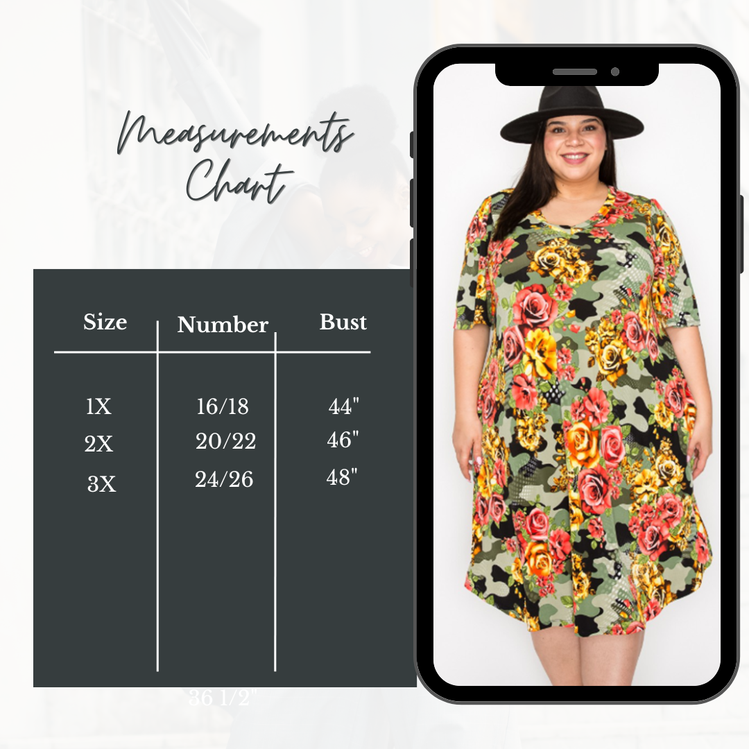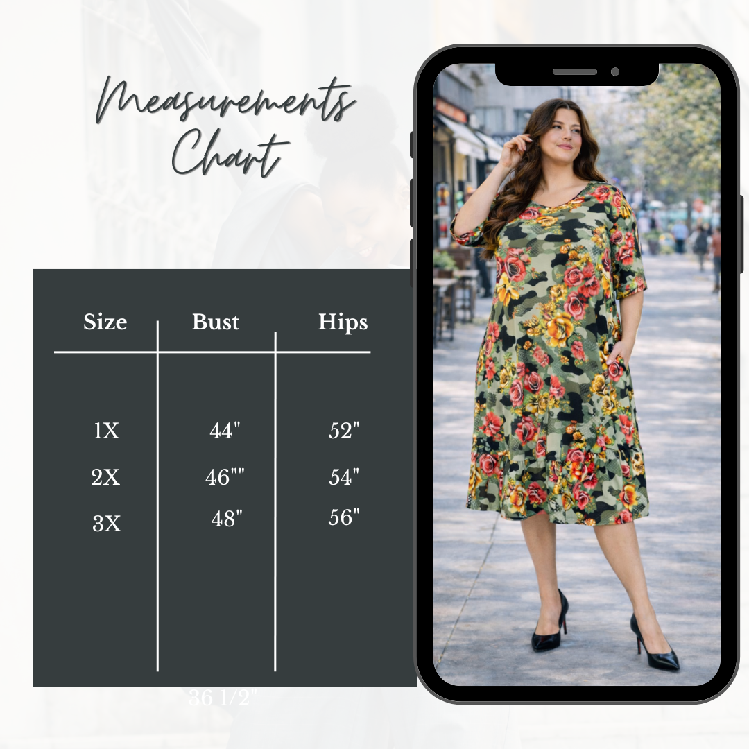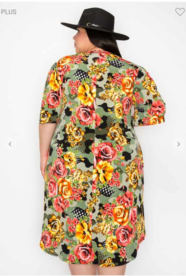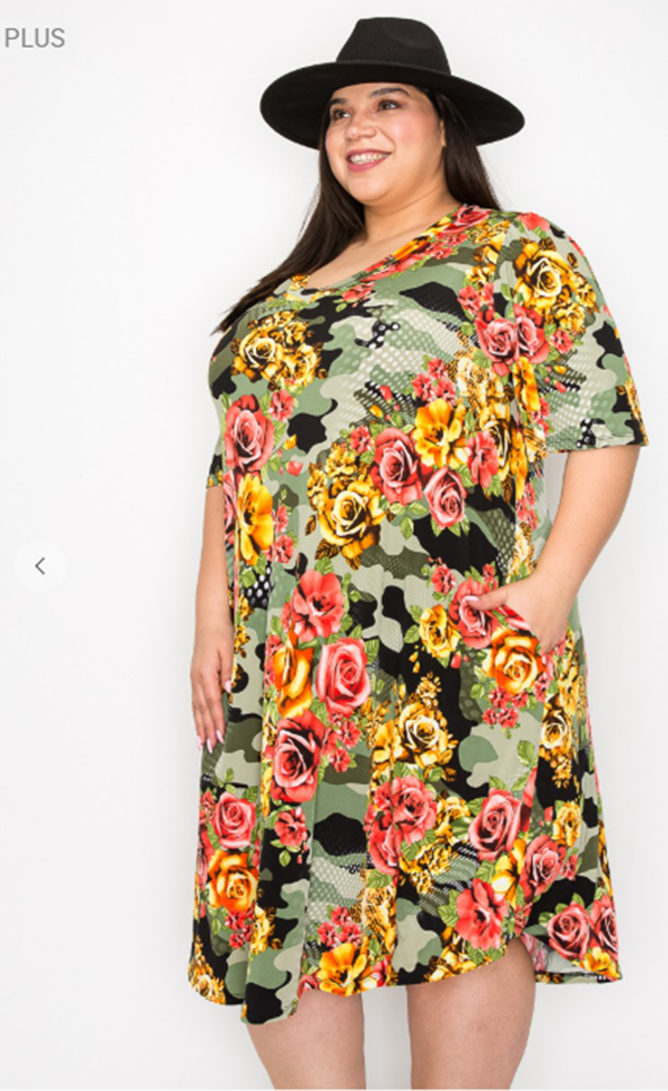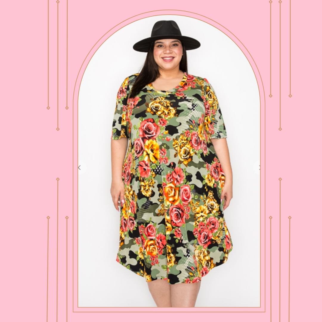 Green Camo/Roses Dress: 1X-2X: FINAL SALE! Cannot Be Returned!