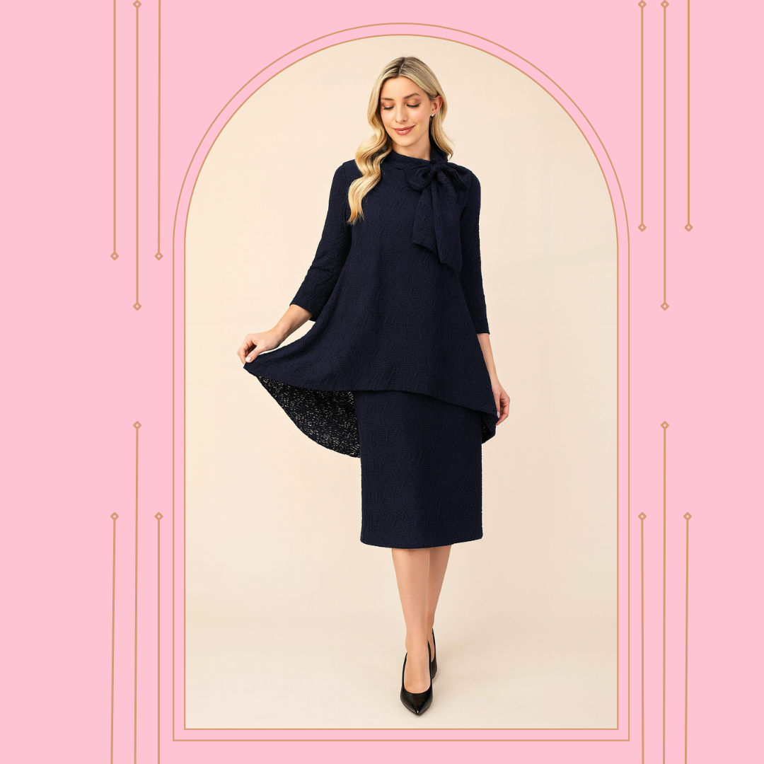 Rene’ is wears size medium . Matches our Navy Textured Skirt!