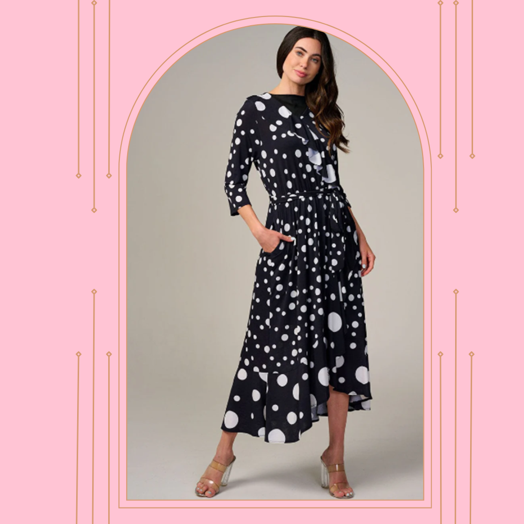 Its polka dot design adds a playful touch to the classic silhouette, making it a must-have piece for any fashion-forward woman.
