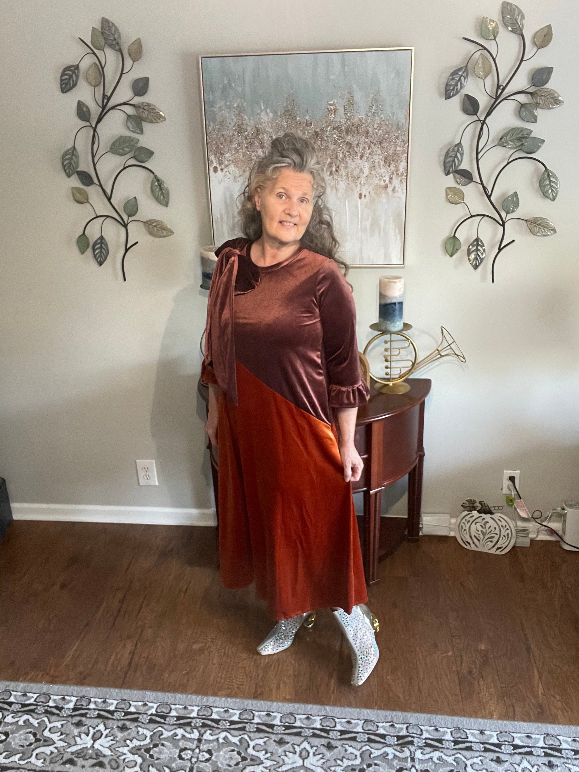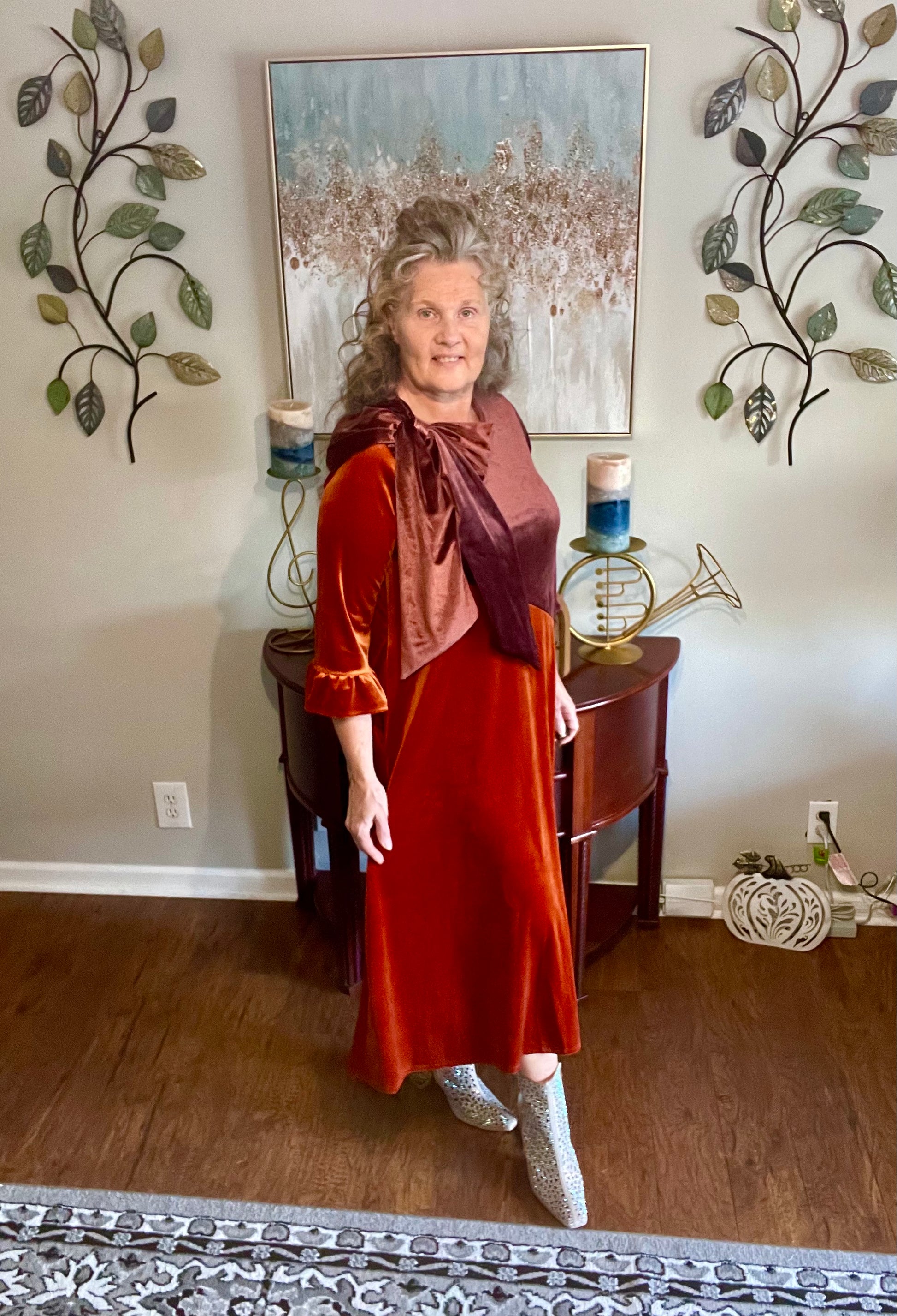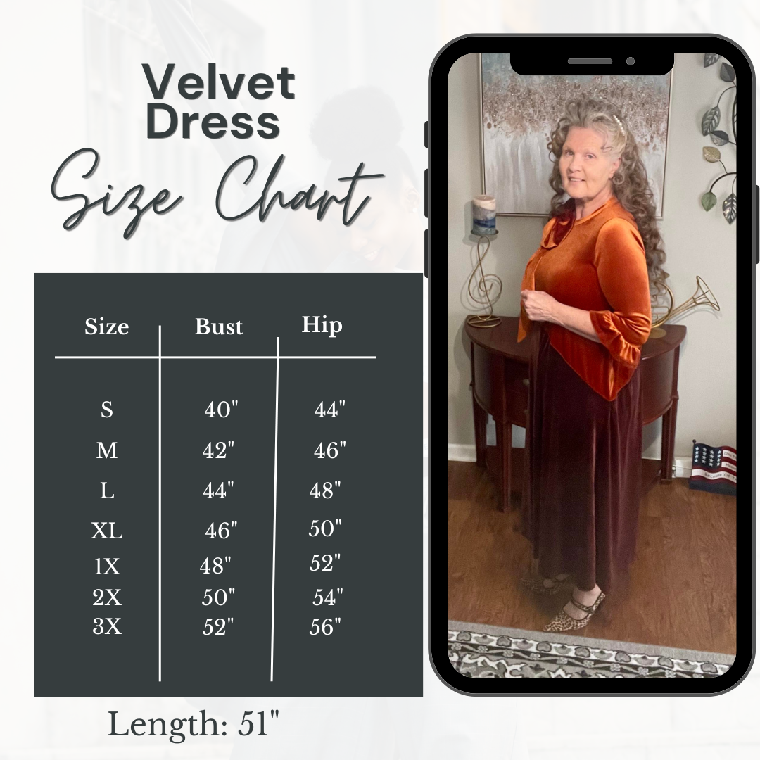 Copper/Brown Velvet Dress. S-3X. Can Be Returned For Exchange Only!