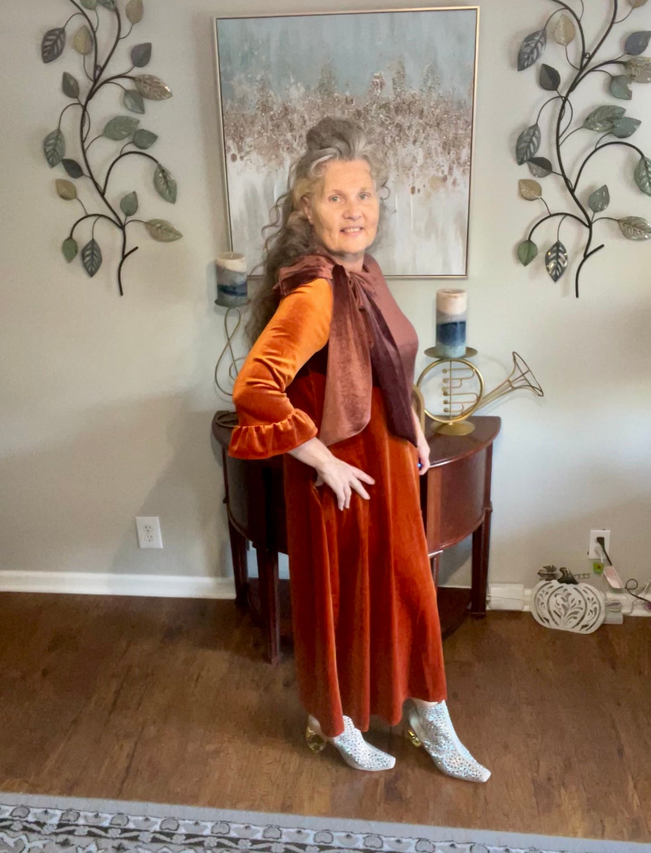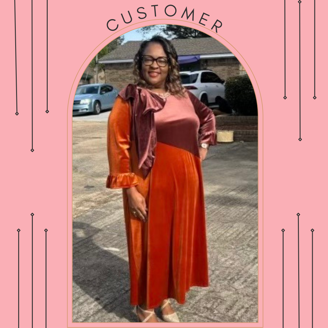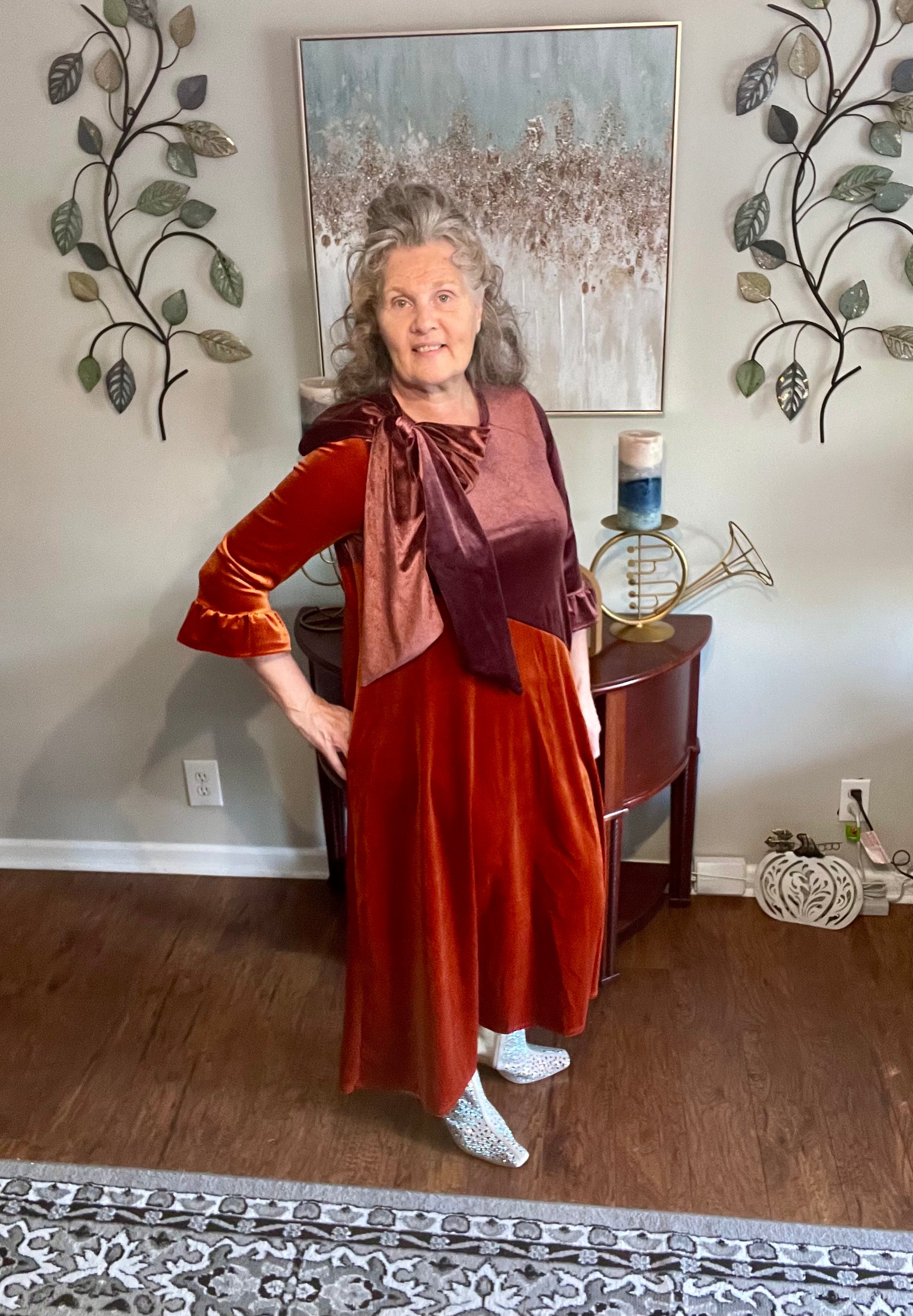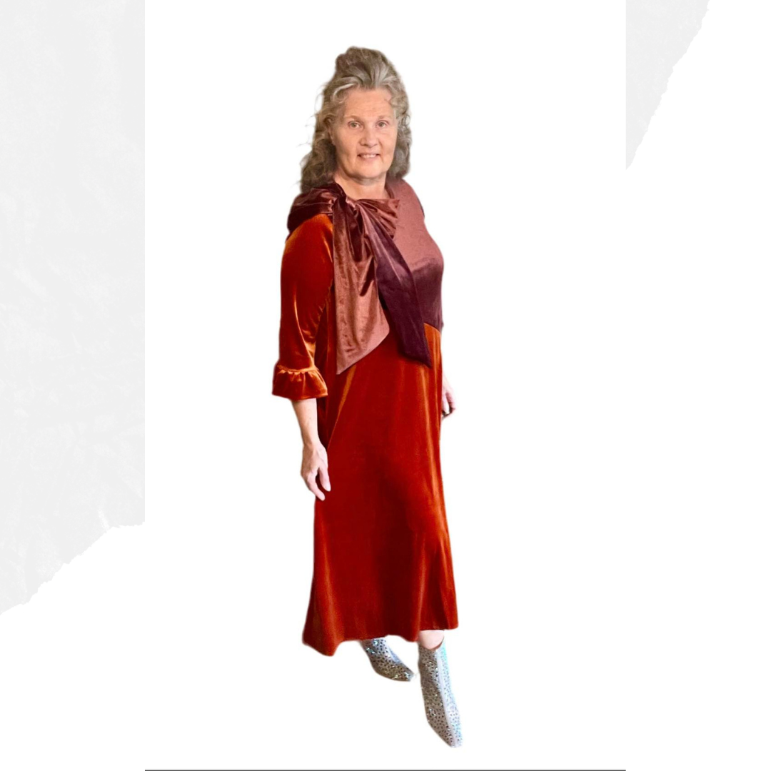 Copper/Brown Velvet Dress. S-3X. Can Be Returned For Exchange Only!