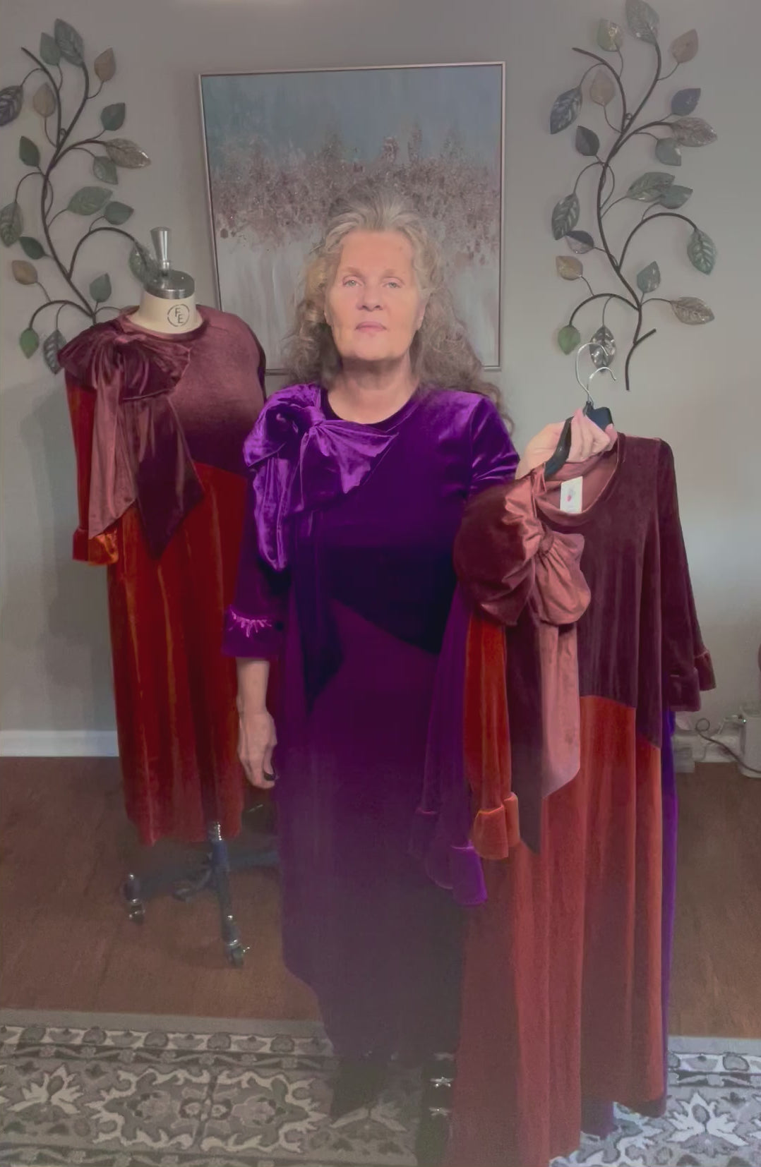 This dress comes in a beautiful soft velvet, a classic round neck, 3/4 sleeves with ruffle and a Neck Bow. It even has pockets!