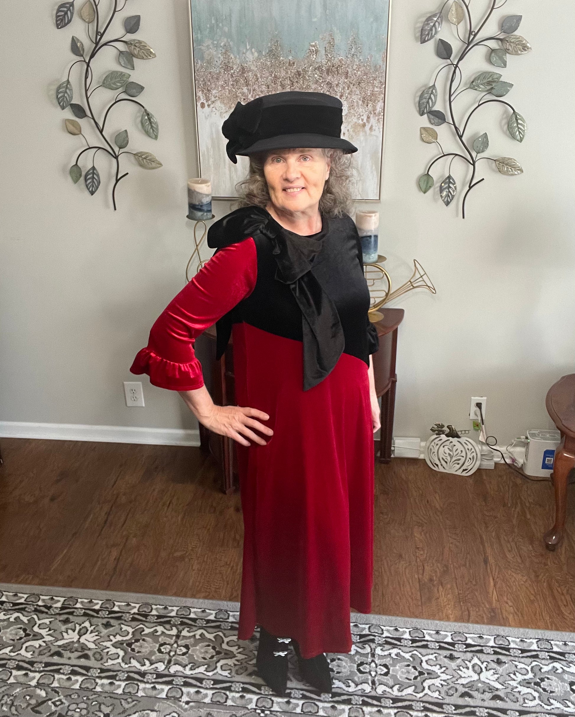 Red & Black Velvet Dress: M-3X. Can Be Returned For Exchange Only!