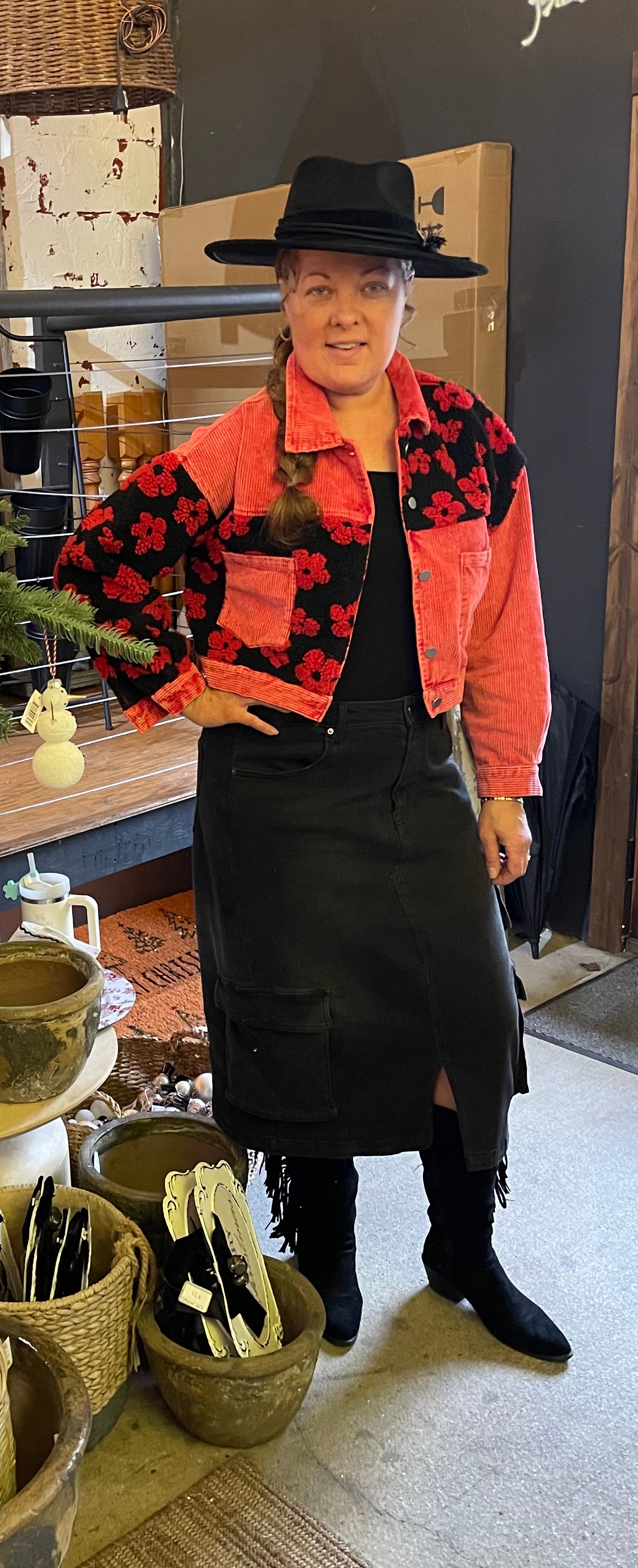Red Corduroy/Sherpa Jacket: S & L FINAL SALE! Cannot Be Returned!