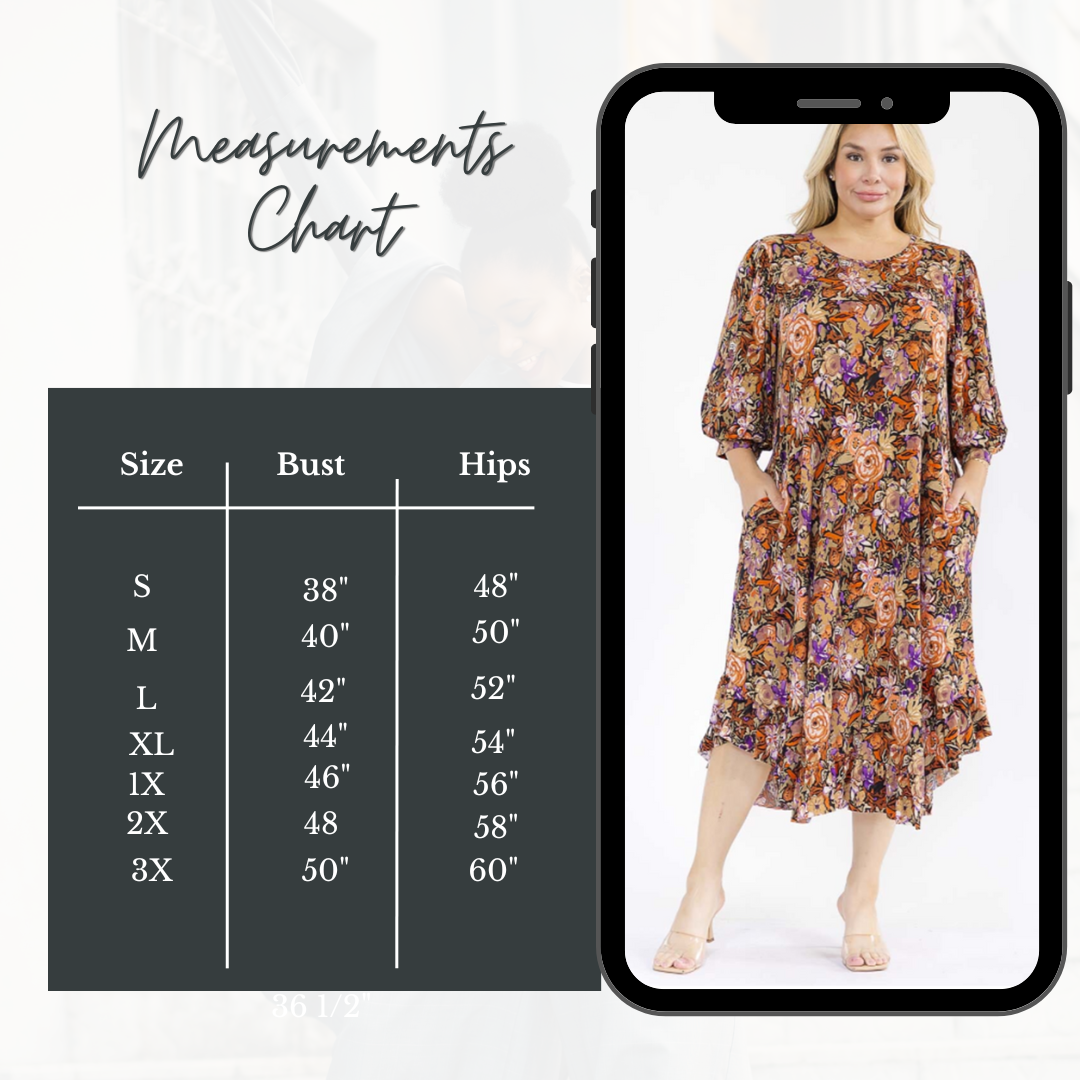 Discover the beauty of our Plus Size Floral Maxi Dress, a quintessential addition for any boutique's collection. This dress features a graceful loose fit and chic 3/4 sleeves, accentuated by functional front pockets. Crafted from a soft polyester-spandex blend, it drapes beautifully, making it perfect for outings or casual evening events.