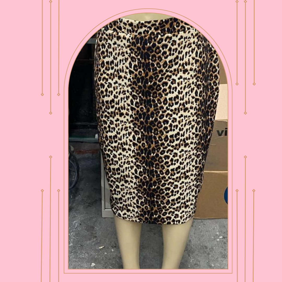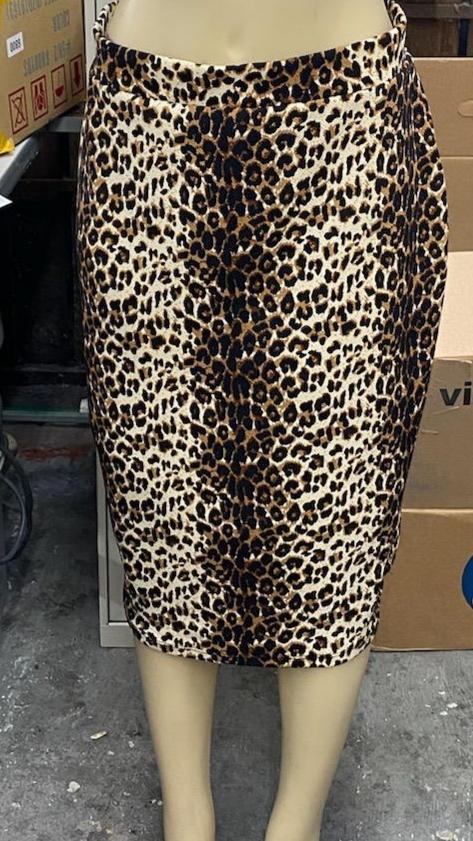 Polyester Knit (similar to double knit) Elastic Waist, no slit. Length: 27"