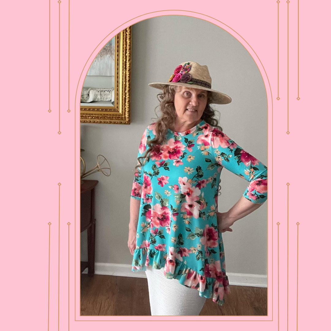 Turquoise/Pink Floral Top! S-1X Final Sale! Cannot be Returned!