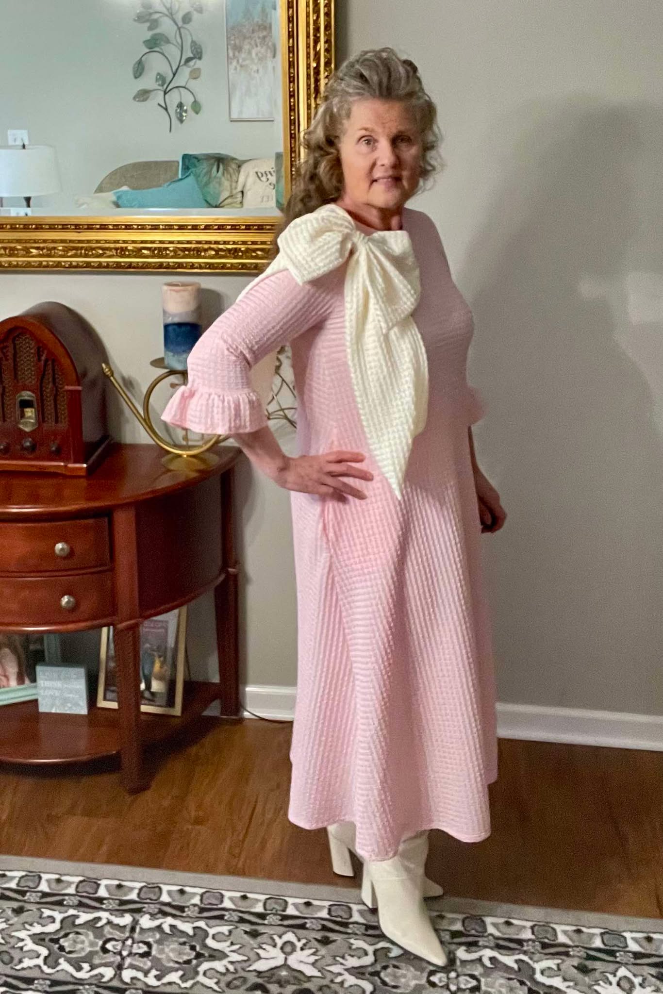 Pink "Bow" Dress: 1X Final Sale! Cannot be Returned!
