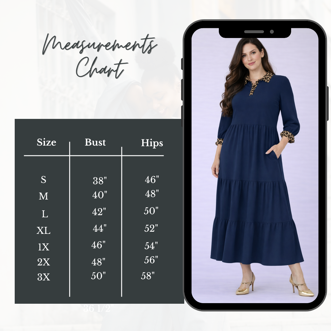 Pre-Order: NEW! "Lauren" Navy/Leopard Tiered Dress S-3X Arriving In Stock: Mid-Late March.